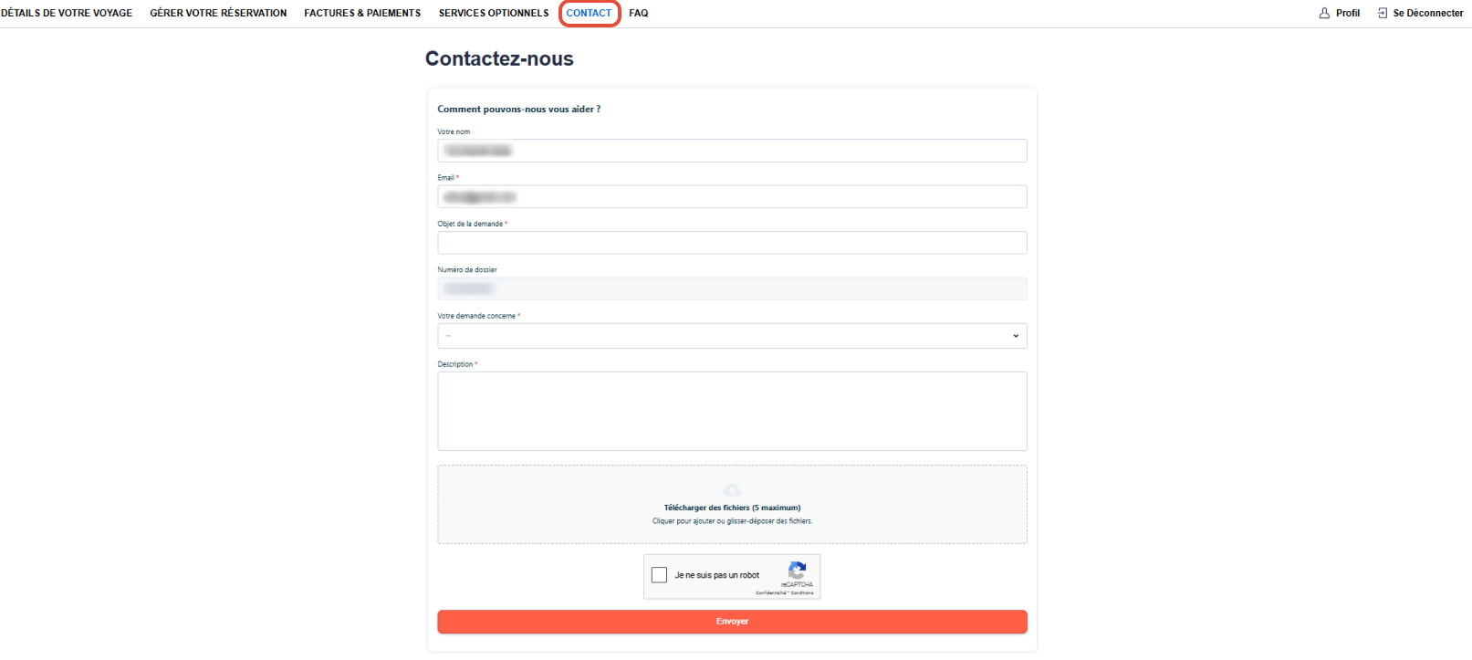 Si toutefois vous ne trouvez pas la réponse à votre question et afin de faciliter le traitement de votre demande, nous vous invitons à nous écrire en complétant notre formulaire de contact accessible depuis le bouton "contact" sur votre espace client Fram Signature où vous retrouvez les documents et informations utiles concernant votre séjour à venir.